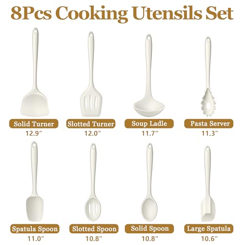 LIANYU 8Pcs Kitchen Cooking Utensils Set, Silicone Utensil Sets, Heat Resistant Kitchen Gadgets Essentials for Nonstick Cookware with Spatula, Spoon, Tuner, Ladle, Dishwasher Safe, White