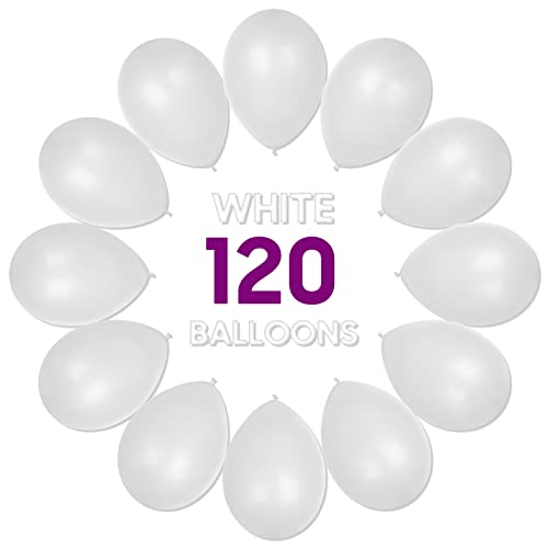 OWill 120pcs White Balloons 12 Inches White Latex Balloons, Helium Quality for Birthday Baby Shower Wedding Party Supplies White Day Arch Garland Decoration