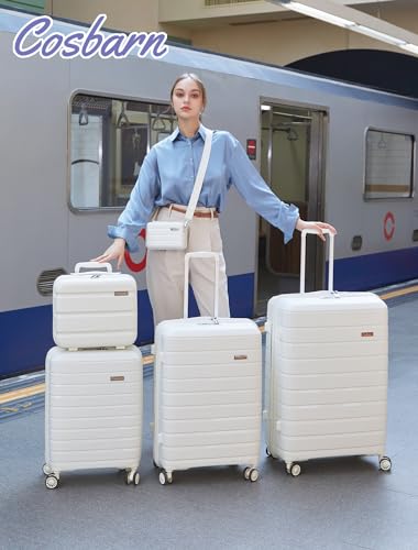 Cosbarn Luggage Sets 5 Piece, Suitcases with Wheels, PP Hard Case Luggage with TSA Lock Spinner Wheels, Carry On Luggage Set (White, 20/24/28 inch)