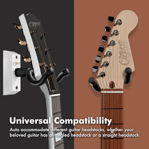 ????????? ??? ???? ???? ?????: ClefArc guitar hanger is designed with an auto pivot yoke to accommodate angled or straight headstocks, ensuring a perfect fit for all your guitars.