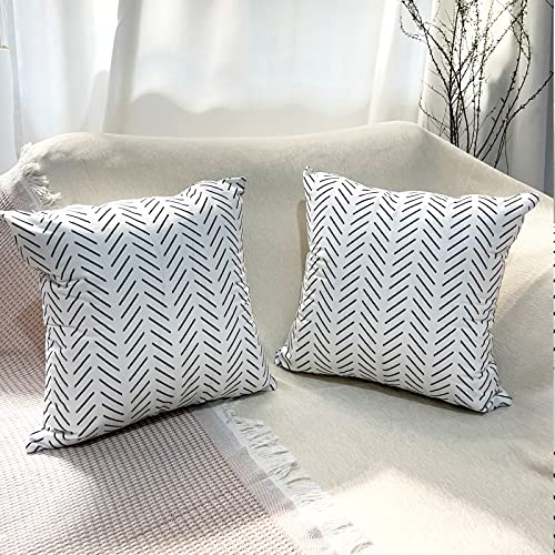 Hunpas Black and White Pillow Covers 18″x18″, Set of 2 Neutral Outdoor White Pillows Decorative Throw Pillow Covers, Modern Geometric Pillow Covers for Western Couch, Home, Sofa, Living Room