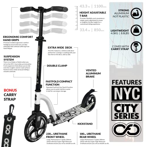 Click for More Images NEW YORK CITY (NYC) - The NYC Scooter from our City Series was designed from the ground up to make your commute or street ride both fast and fun.FASTFOLD TECH - Our patented FastFold technology allows you to quickly and...