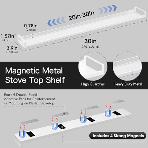 Click for More Images Strong Magnetic Base: Equipped with four powerful magnets, this shelf firmly attaches to the stove top, ensuring stability and preventing sliding.Adjustable with Safety Guardrail (20-30 Inches): Tailored to fit various stove...