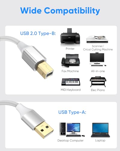 Click for More Images ?Wide Compatibility for Printing?The USB-B port on this Printer Cable 10 Feet is specifically designed for connecting devices such as printers, scanners, fax machine, cricut cutting machine, servers, MIDI keyboard, DAC,...