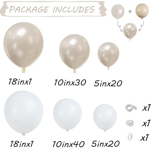 Click for More Images Pearl White Balloon Garland Arch Kit:The pearl white balloon arch kit includes 112pcs double stuffed pearl white balloons and white balloons in different sizes (5", 10"and 18"). These pearl white balloons and pastel white...