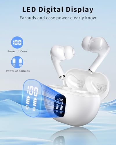 Click for More Images 50 Hrs Playtime and Dual LED Display: Each earbud lasts up to 8 hours on a single charge, and up to 50 hours of playback with the charging case, giving you an exceptional long-lasting experience. In addition, the in-ear...