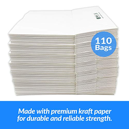 Click for More Images White Paper Bags with Handles | 10" x 5" x 13" | 110 Pcs Bulk | Gifts, Shopping, Retail, Take OutPremium Kraft Paper - Built with premium materials for strong durability (68 basis weight)Reinforced Flat Handles - Handles...