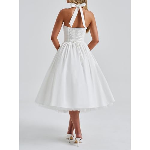 Click for More Images Material: Flowy cocktail dresses for women made from 100% Polyester,soft and comfy,lightweight and breathable,Flirty and fun ,with fully lined,complete a very glamorous summer lookDesign: A-line short party dress,Halter...