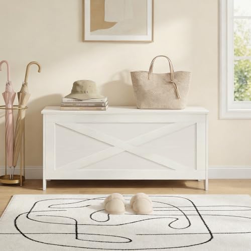 Click for More Images High-End Aesthetics: The sophisticated barn door design is paired with white-color panels for a modern minimalist vibe, making this storage bench suitable for any home decor, adding an international flavor to every living...