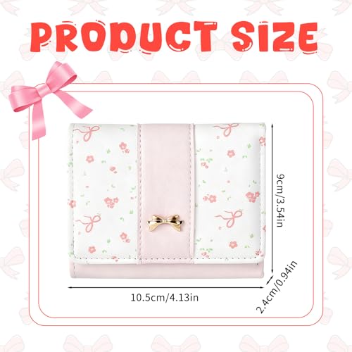 Click for More Images Cute and Fashionable; you will receive 1pc cute bow wallet, pink and white with a golden 3D small bow embellishment, which perfectly combines the elegant temperament of women with the dreamy romance of girls, suitable for...