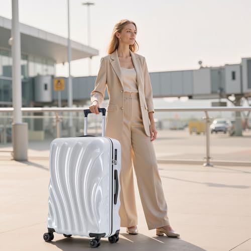 Click for More Images 22 Inch Expandable Carry On Luggage: Small suitcase carry on measures 22”x14”x9” including wheels, meeting carry on luggage 22x14x9 airline approved requirements; and can expand 1.2”. Interior is...
