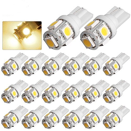 YITAMOTOR 20 PCS T10 Wedge 5-SMD 5050 Warm White LED Light bulbs W5W 2825 158 192 168 194
