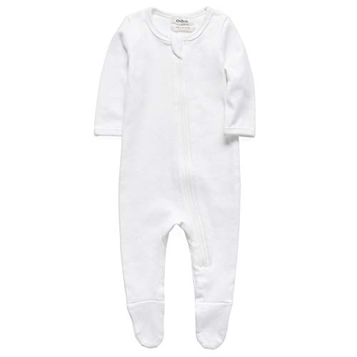 O2Baby Baby Boys Girls Organic Cotton Zip Front Sleeper Pajamas, Footed Sleep ‘n Play ?3-6Months,Off-White?