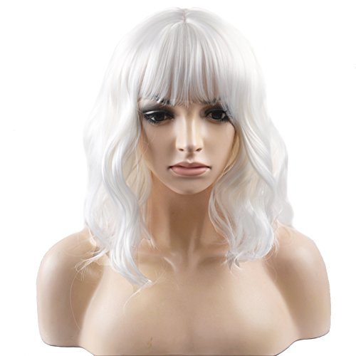 Home » Beauty » BERON 14” Short Curly Women Girl’s Charming Synthetic Wig with Air Bangs Wig Cap Included (White)