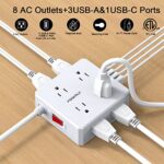 10Ft Surge Protector Power Strip – Flat Plug Extension Cord with 8 Wi…