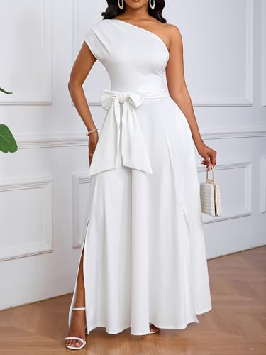 Home » Bridal » Women’s One Shoulder Maxi Dress A Line Flowy Cocktail Party Side Split Long Dress White XXL