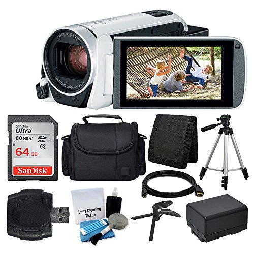 - Canon VIXIA HF R800 Camcorder (White) – Sandisk Ultra SDHC 64GB 80MB/S Class 10 Flash Memory Card – Photo Video Quality Tripod