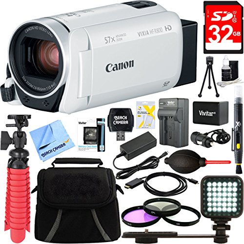 Canon VIXIA HF R800 Full HD White Camcorder + 32GB Card and Accessory Bundle