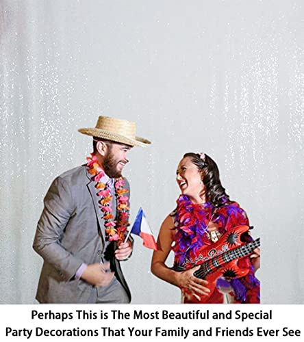 ShinyBeauty Sequin Backdrop 4FTx8FT White Backdrop Curtains Photography Backdrop Sequin Fabric Backdrop for Wedding Party Birthday Prom Photo Backdrop
