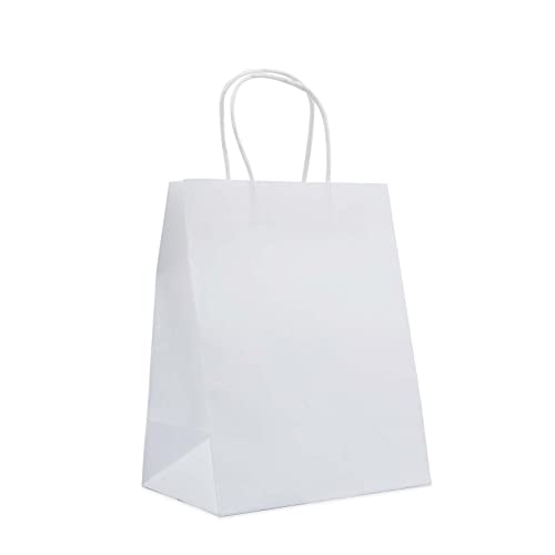 Click for More Images Kraft paper bags for gifts, merchandise, and moreIncludes 25 bags made of 100% recyclable white kraft paper2 loop top handles on each bag for easy lifting and carryingFlat bottom ensures free standing stabilityUse as is or...