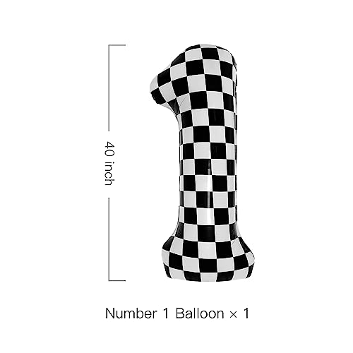 Click for More Images Customized Checkered Number 1 Balloons: This number balloons feature black and white color, classic and vintageCenterpiece Decorations for Party: Perfect for racing checkered flag party, one happy dude birthday decorations,...