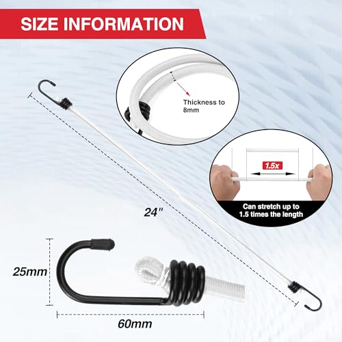 Click for More Images Excellent Strength and Elasticity: WORKPRO Outdoor Heavy Duty Bungee Cord, each bungee cord is constructed from high-quality PP wire and rubber core, ensuring superior strength and stretch as needed. Can be used indoors and...