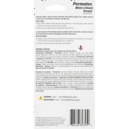 Click for More Images All-purpose white lubricant for metal-to-metal and metal-to-plastic applicationsWithstands moisture and high heatProtects against rust and makes surfaces friction-freeStainless and non-toxicSuggested Applications: Door...