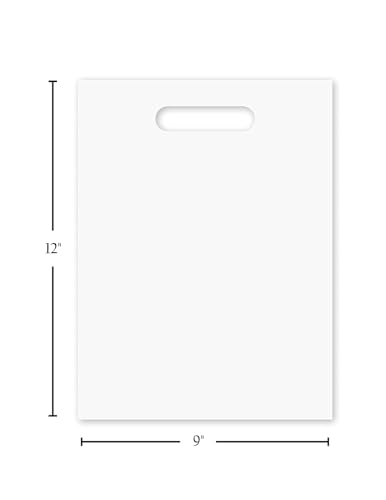 Click for More Images BULK PACK: Pack includes 100 thick white plastic bags with die cut handles.USE: The 9x12 bags are the perfect retail bags for boutique or a small business great for clothes, crafts, gifts, or any medium sized...