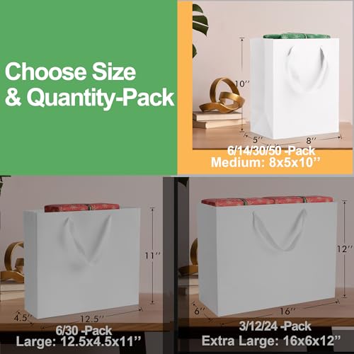 Click for More Images Multiple size options: White gift bags Medium-8x5x10 Inch, Large-12.5x4.5x11 Inch, Extra Large-16x6x12 Inch. Eco-Friendly and Reusable: Crafted with high-quality, recyclable kraft paper, these matte white gift bags offer not...