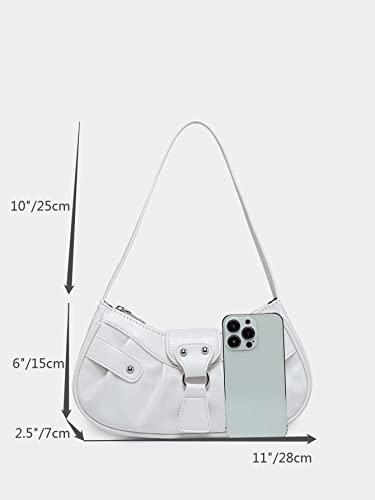 Click for More Images ???Size??The white shoulder bag dimension measures 11x3.7x4.5 inches (LxWxH); The handle length is 11 inches; Weight 0.83lb, easy to wear on your shoulder.Perfect Size for Women.Please allow 1 inches size error due to manual...