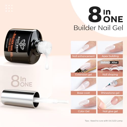 Click for More Images Exclusive 8-In-One Builder Nail Gel: Designed with innovative formula, this versatile milky white gel builder is perfect for 8 amazing applications including as a base coat, color gel, building apex, strengthening overlay,...
