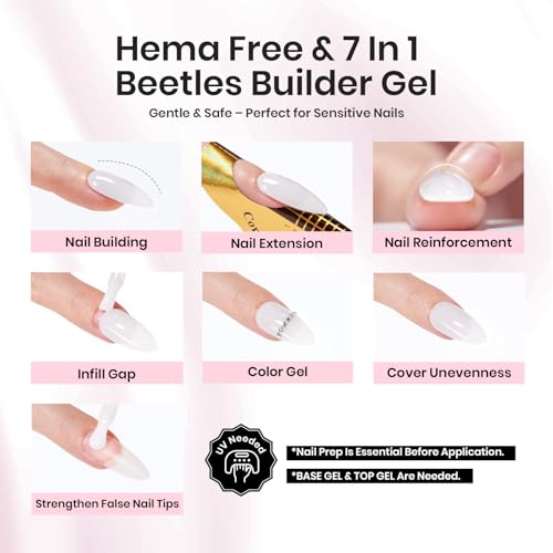 Click for More Images Hema Free Beetles Builder Gel : HEMA-Free & gentle formula,Perfect for sensitive nails and skin. Safe, low-odor, and beginner-friendly7-in-1 Strengthener Gel : Builder gel in a bottle for building apex, nail extension,...
