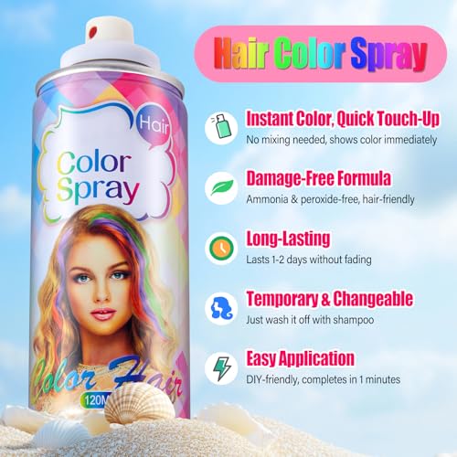 Click for More Images 1. Temporary & Washable Hair Color Spray--Easy to Remove – Washes out with shampoo in 1-3 washes, no long-term commitment. ,No Damage – Ammonia-free, peroxide-free, and non-destructive to natural hair.2.Natural...