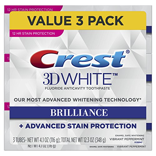 Brighten your smile with Crest 3D White Brilliance Vibrant Peppermint Whitening Toothpaste. It’s 3D White's Fastest Whitening* combined with our Advanced Stain Protection*. It whitens your teeth by removing up to 95% of surface stains in 3 days....