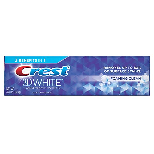Brighten your smile with crest 3D white foaming clean whitening toothpaste. It whitens your teeth by removing up to 80 percent of surface stains and protects against future stains. 3D white fluoride toothpaste also strengthens your tooth enamel...