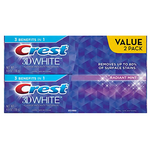 Brighten your smile with crest 3d white radiant mint whitening toothpaste. It whitens your teeth by removing up to 80 percent of surface stains and protects against future stains. 3d white fluoride toothpaste also strengthens your tooth enamel and...