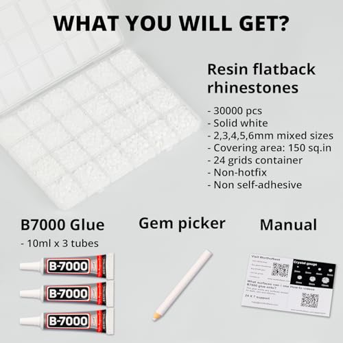 Click for More Images Package Content with Tool (pickup pen and manual) -- The bedazzler kit Package includes 1 solid white rinestones set with 24 grids, approx. 30000 pcs of 2-6mm bling-out resin rhinestonesBedazzling Anything -- These flatback...