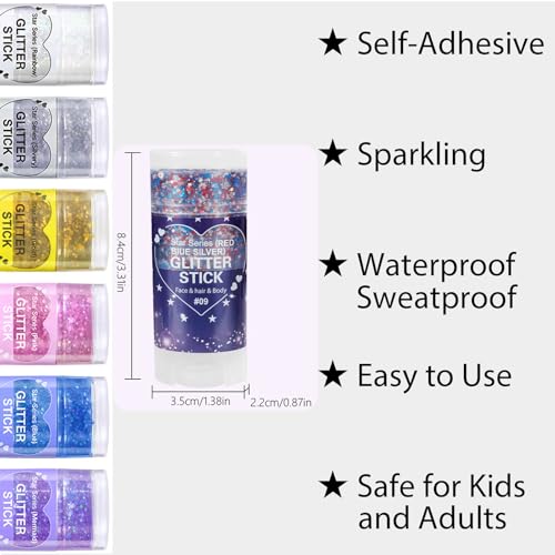 Click for More Images Patriotic Body Glitter: This red white and blue body glitter stick is designed to match the American flag,with fine glitters and chunky sequins that shift in color for a dynamic patriotic shine.Great 4th of July accessories...