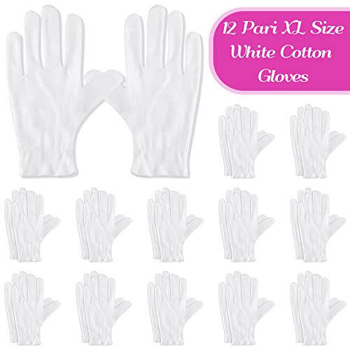 Click for More Images QUANTITY – Paxcoo white cotton gloves come with 12 pairs extra large white coin gloves in XL size for your usingONE SIZE FITS MOST – Paxcoo thin moisturizing gloves are approx. 9.4” XL in length and with slightly...