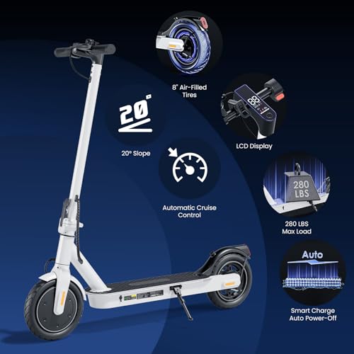Click for More Images Efficient Performance:This scooter reaches a top speed of 20 mph, With a maximum range of 28 miles per charge, energy-efficient 14x2.125-inch tires, and a recommended tire pressure of 29-43 PSI, 499Wh battery fully charges...