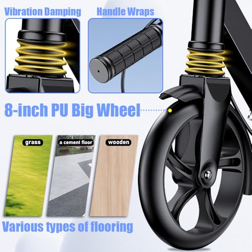 Click for More Images ALUMINUM ALLOY FRAME-This scooter is made of high-quality aluminum alloy material to make a lighter and more durable frame.Easier to carry,Better heat dissipation function prolongs the battery life, excellent oxidation...