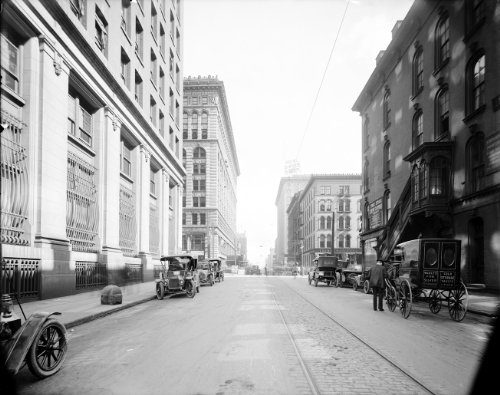 This photograph shows Swan Street, Buffalo New York, 1910 Printed on premium semi-matte paperArchival rating of 125+ yearsColor will not fade or lose its lusterVery high resolution provides fantastic detail on actual printShipped securely and...