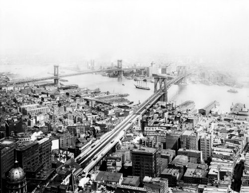 This photograph shows Brooklyn and Manhattan bridges, New York City, 1916. Printed on premium semi-matte paperArchival rating of 125+ yearsColor will not fade or lose its lusterVery high resolution provides fantastic detail on actual printShipped...
