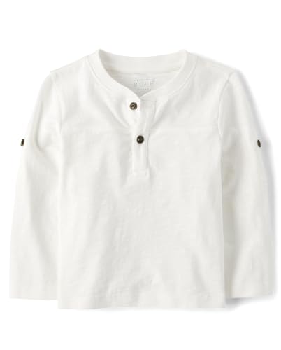 The Children’s Place Baby Boy’s and Toddler Long Sleeve Rolled Cuff Henley Shirt, Bunny’s Tail White