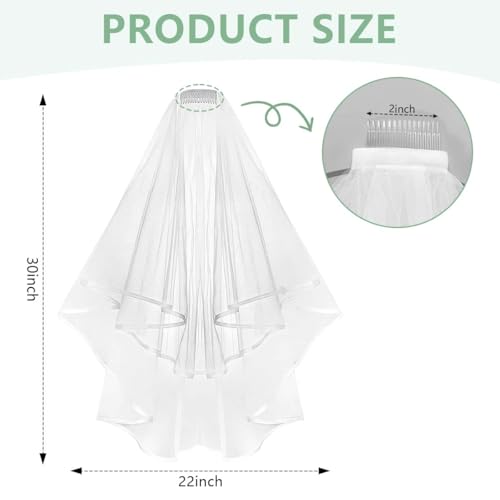 Click for More Images Our bride wedding veil is made of high-quality tulle, and the fabric is soft and comfortable.Easy to clean, can be folded and stored when not in use, saving space.Our wedding veil is about 30 inches long, to the...