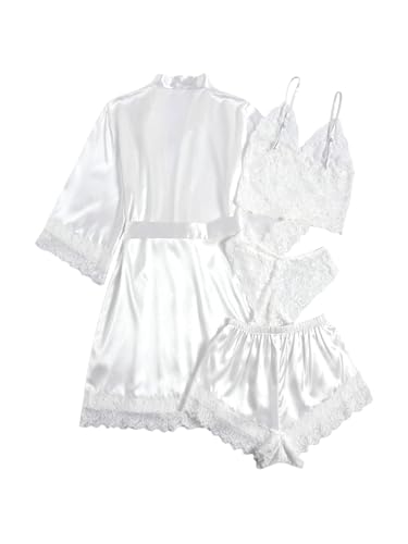 Click for More Images Features: 4 Pieces, Satin, Lace, Belted, RobeFabric has no stretch,but it's Soft and ComfortableOccasion: Sleep, Pajama Party, Loungewear, Lingerie, Nightwear and so on.Bust Size: (Small) 26.0-34.6 / 42.5 inch; (Medium)...