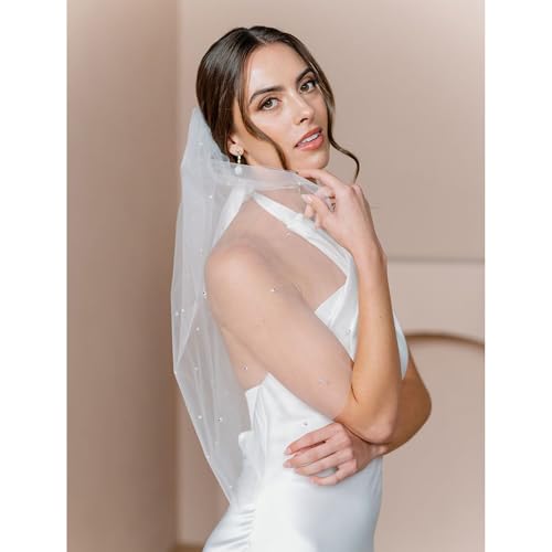 Click for More Images High quality materials:Wedding veils are made of white and tulle,with delicate pearls for decorating and romantic and creative? It is lightweight and comfortable to wear all dayThe size of wedding veils:The pearl veil length...