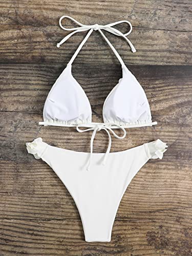 Click for More Images Fabric: High stretch, comfortable and skin friendlyDesign: 2 piece set, tie back, halter, floral appliques, triangle bikiniOccasion: Suit for swimming, spa, surfing, bathing, pool, beachwear, etcGarment Care: Machine wash,...