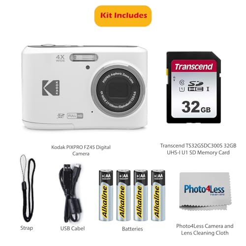 Click for More Images BUNDLE INCLUDES: Everything you need to start snapping right out of the box, including KODAK PIXPRO FZ45 Camera (Black), AA batteries (4 Pack), 32GB SD memory card, Wrist Strap, and Photo4Less lens cleaning cloth.THE BIG...