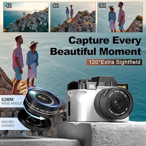 Click for More Images ?64MP IMAGING & 5K VIDEO?This advanced digital camera is powered by an IMX CMOS processor, delivering stunning 64MP photos and ultra-clear 5K/2880P videos. Supports HDR shooting, automatically optimizes color and detail...